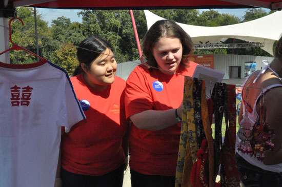 Yongmei Hu and Zhu Han, two teachers from Confucius Institute of Presbyterian College, set up a stand in this Festival with carefully prepared traditional ethnic handicrafts, such as Chinese knots, Guizhou batik, Peking Opera masks, Chinese paper fans, and ties decorated with pandas and dragons. Those two teachers wrote Chinese names for visitors from various countries with Chinese traditional brush pens, putting names on the Zodiac bookmarks. Visitors were very happy and excited to get a Zodiac bookmark with their Chinese names on, thumbing up and saying, ”It is so awesome!”